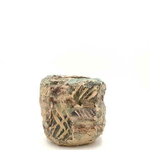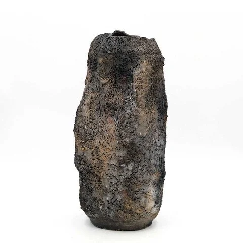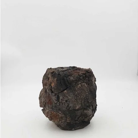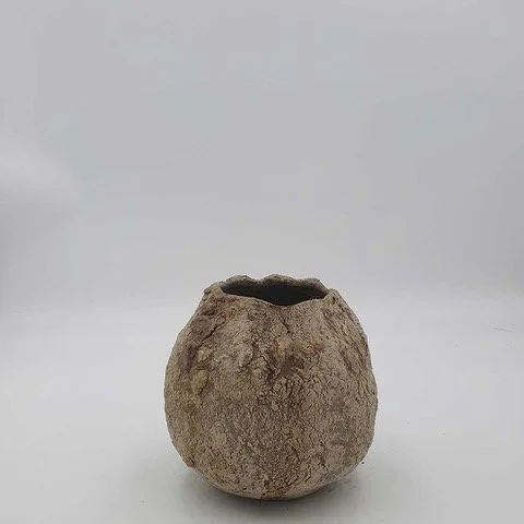 Foggiatura a tornio e cut- stretch di argilla Gres con aggiunta di rocce di raccolta. Cottura elettrica e a gas. Tecnica Raku.