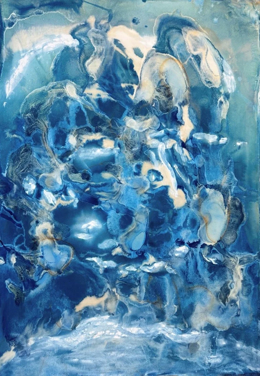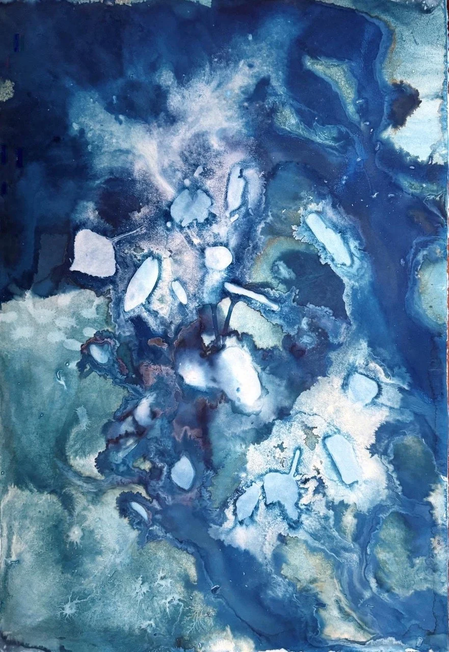 Tecniche come la cianotipia, l'acquaforte e la stampa a inchiostro si intrecciano in una continua ridefinizione dei confini tra i media. Pur affondando le radici in pratiche storiche, questi esperimenti si rinnovano attraverso processi che trasportano la memoria radicata dei materiali nel presente. Il lavoro di Abbott prospera di incontri e collisioni: inchiostri, pigmenti, argille e ossidi si combinano in una tensione costante tra gesti controllati e casualità. I materiali non sono mai semplici strumenti, ma presenze vive: portatori di storie, proprietà e resistenze che richiedono attenzione e sensibilità tecnica.